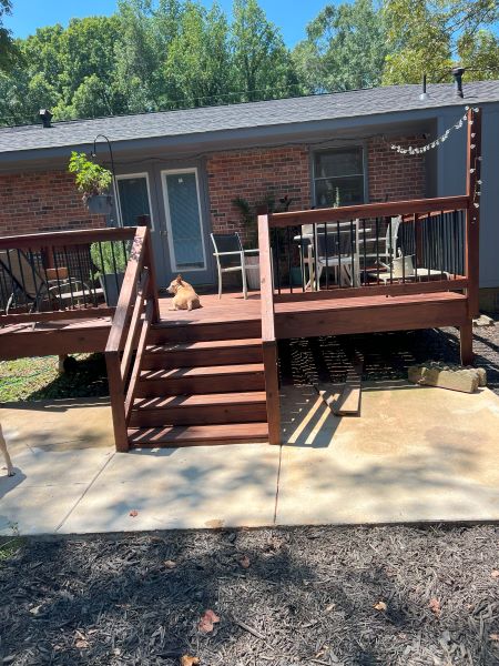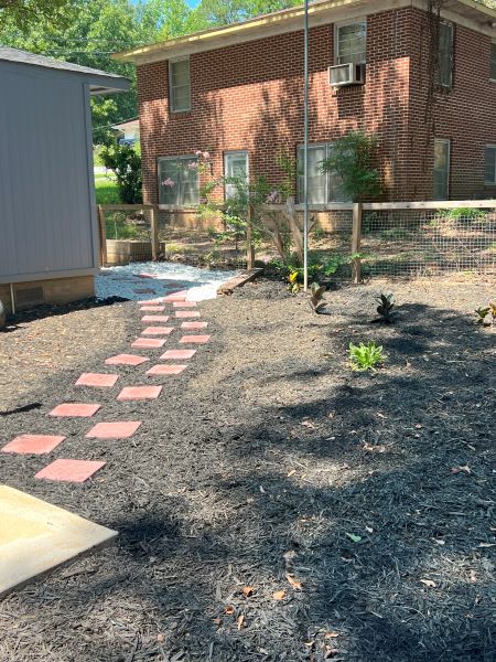 - Leveled and landscaped pathway from my carport to the back deck which significantly cut down on the tripping hazards (especially for me) and the mud the dogs will track into the house.
