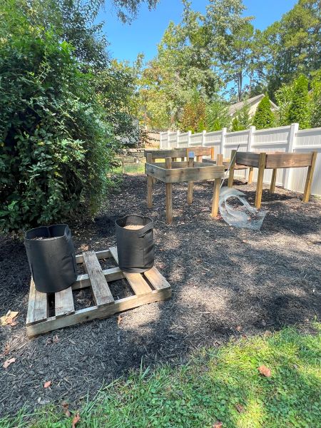 - Raised beds in backyard – too tall for dog’s to bother