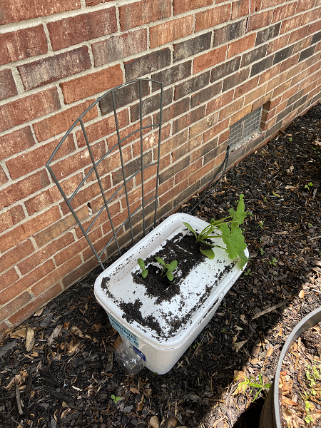- I got real creative and did lots of googling for space saving and efficient ways to grow all my fav veggies. We are growing squash and cucumbers in this self watering planters made from styrofoam coolers and large water bottles (all of which we collected from people’s cast offs). The plants are starting to flower and I’ve tied the first vines up. I expect we will start seeing veggies soon.